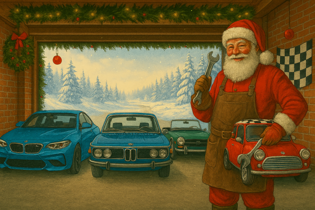 🎅✨ Nikolaus in der Garage – mit Herz und Schraubenschlüssel! Heute, am 6. Dezember, parkt der Nikolaus nicht den Schlitten, sondern schraubt liebevoll an Klassikern: BMW, TR6, Mini – festlich geschmückt, bereit für neue Abenteuer. Ein Gruß aus der winterlichen Werkstatt voller PS, Nostalgie und kleinen Überraschungen.