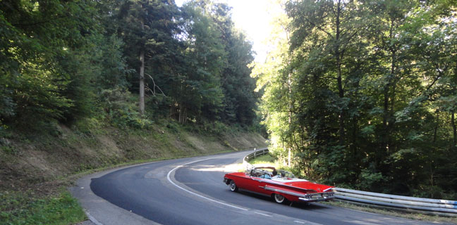 Zum Abschluss führt der Weg hinauf zum Schauinsland – eine historische Bergrennstrecke, die Herz und Hände fordert. Kehren, Rhythmus, Präzision. Oben angekommen öffnet sich der Blick über Freiburg und die Gipfel des Schwarzwalds. Ein Moment, der bleibt.